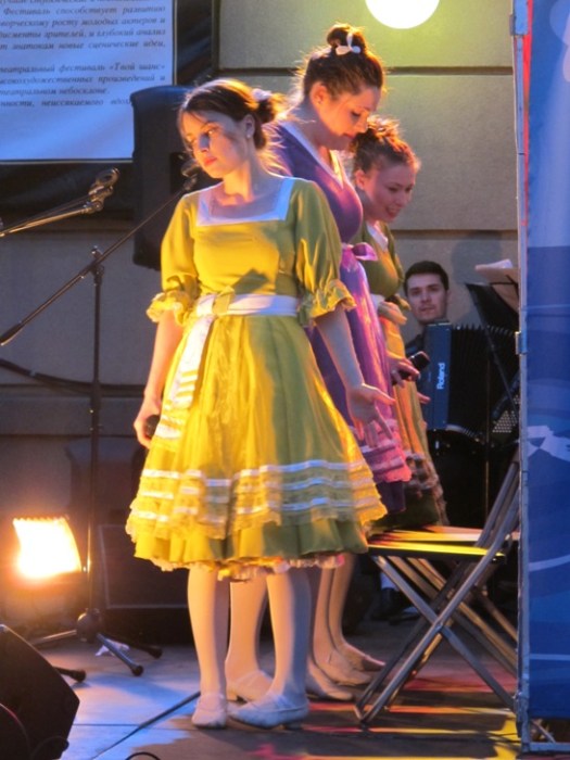 Die Krönung, während gestern Abend die meisten Menschen die Russenomas am Bildschirm begleiteten, wagte sich eine junge Band mit rhytmischen Klängen auf die Bühne „Your chance“. Die drei Mädels begleitet von Männern an Akkordeon, Klarinette, Schlagzeug hätten sicherlich knapp hinter den Omas gelegen. Immerhin sind wir ein Weile stehen geblieben. Das hatte was.