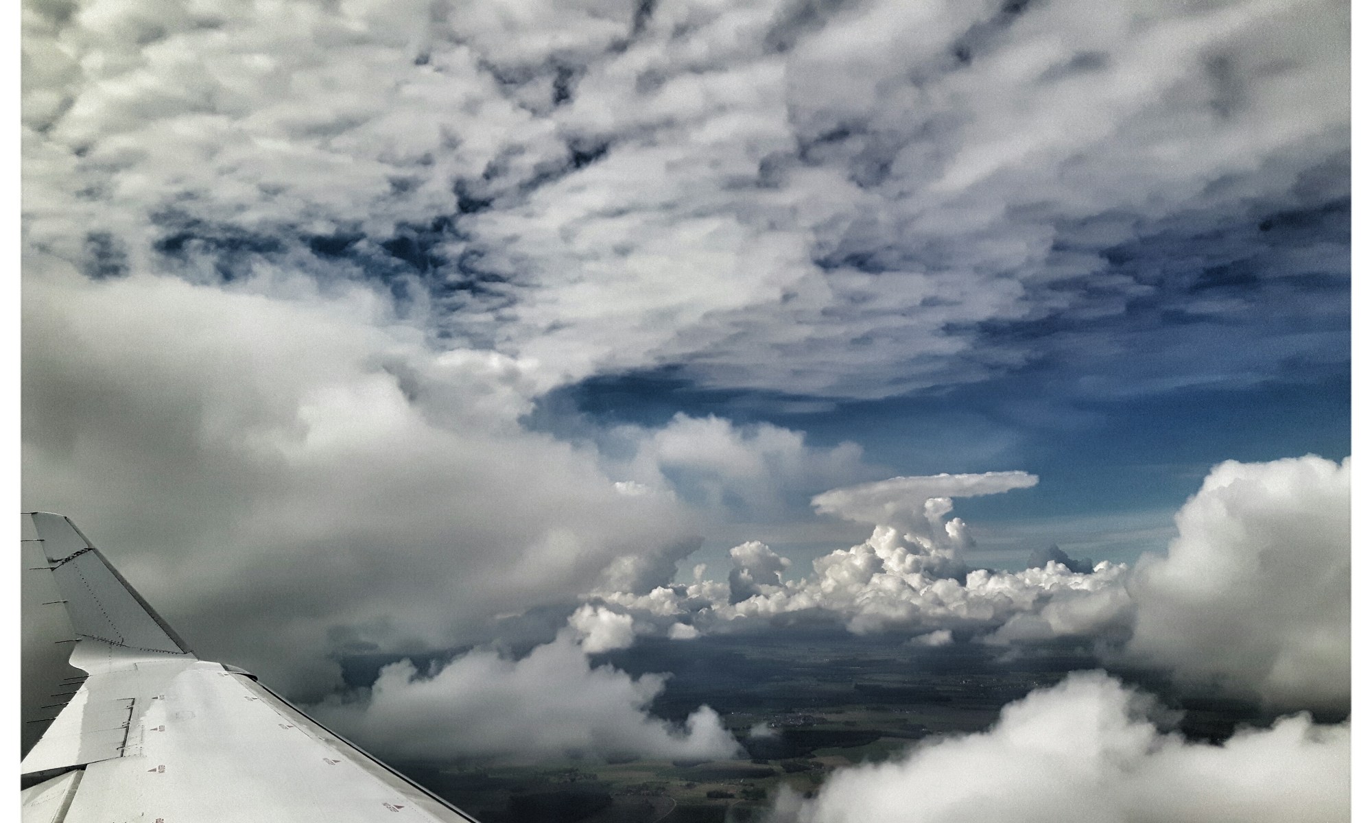 Ich nutze die Zeit, um den Himmel zu betrachten, suche Gestalten in Wolken. Den Wind kann ich von da aus nicht hören. An der Tür des Notausgangs ist es auch innen kalt. Unfassbar schön und viel – da oben, da hindurch, darunter.