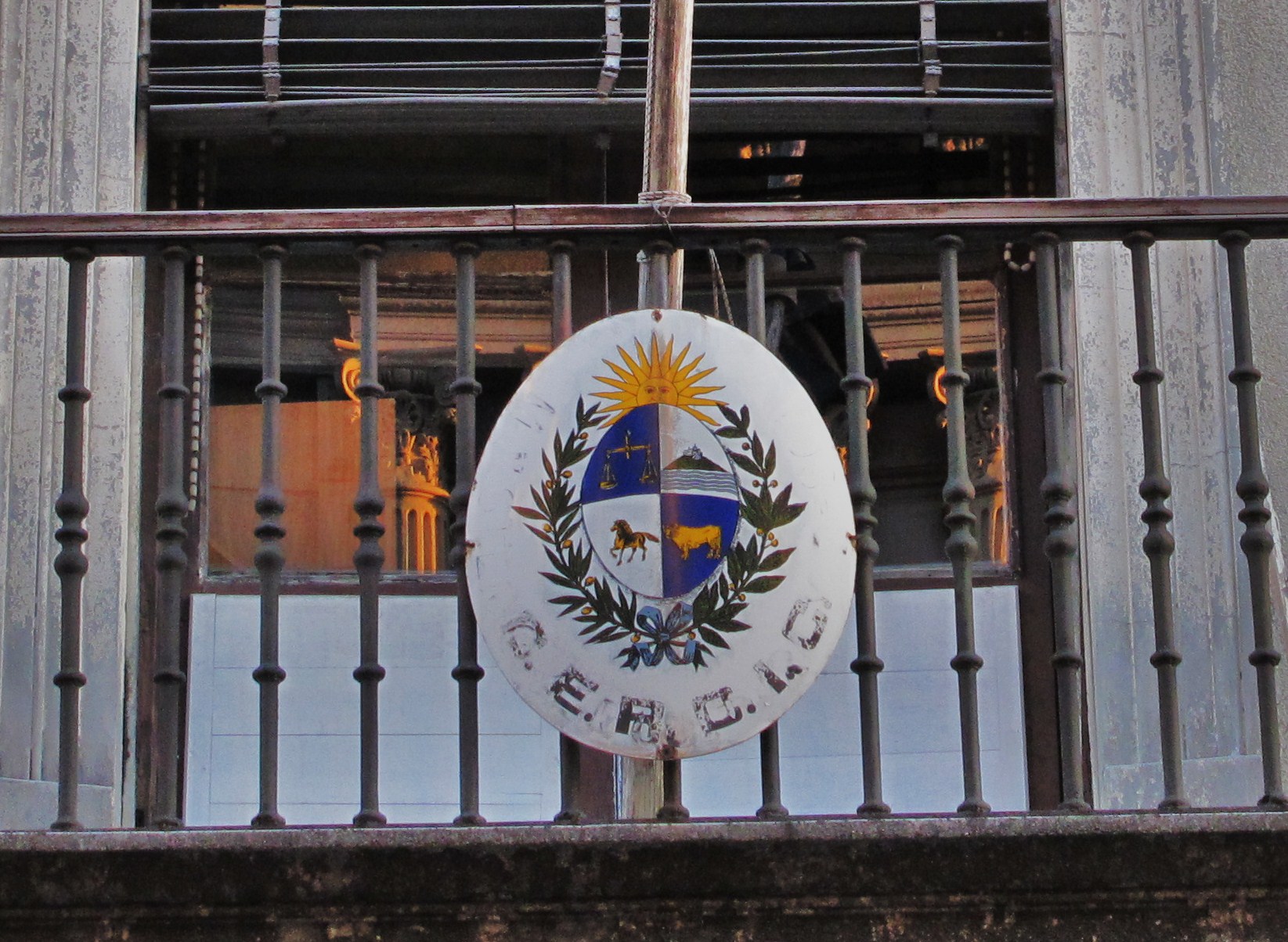 Im Restaurant daneben hockten Bekannte. Auf die Frage, ob sich die Aufgregung um die Steaks lohne, bemerkte einer der Kollegen: Wenn du dich fühlen möchtest wie in der Crewmesse, dann solltest du hier essen. Das bezog er weniger auf das Essen als auf die Menge der Crewangehörigen, die sich dort zum Zwecke einer Abwechslung niedergelassen hatten. So hungrig waren wir dann doch nicht. Schlenderten durch die leeren Straßen, die zu überqueren uns kaputte Ampeln geboten. Häuser geschmückt mir der „Sonne“ und den „Diamanten“ der Freimaurer. Sowohl in Uruguay als auch in Argentinien und Brasilien fanden sich viele Einflüsse der Freimaurer. Neugier trieb mich ins Netz, um mein galantes Halbwissen ein wenig aufzupeppen, mich nicht nur auf Literatur, Reiseführer oder Erzählungen und deren Informationsgehalt verlassen. Eine ihrer Wahllisten heißt : 33. Soll ein Symbol der Freimaurer sein. Ich halte aber lieber mal still bei meinem Nichtwissen. Denn das Nachlesen hat mir nur bestätigt : Außer ein paar Daten aus der Historie weiß ich nichts. Neugierig gemacht hat es mich. Mal schauen, ob ich dazu noch eine fundierte Meinung bekomme. Oder ist diese Bedürfnis zu schweigen gar im Sinne der Freimaurer? I have NO idea! Viele Gäste lasen gerade Dan Browns: Das verlorene Symbol. Immer wieder fiel dieser Buchtitel., als wir in den Straßen von Montevideo oder auch in Paraji, Brasilien herumliefen. Ich war dann so mutig und habe im Namen aller Amwesenden gefragt, wie die Menschen in Uruguay zu dem Thema „Freimaurer“ stehen.
