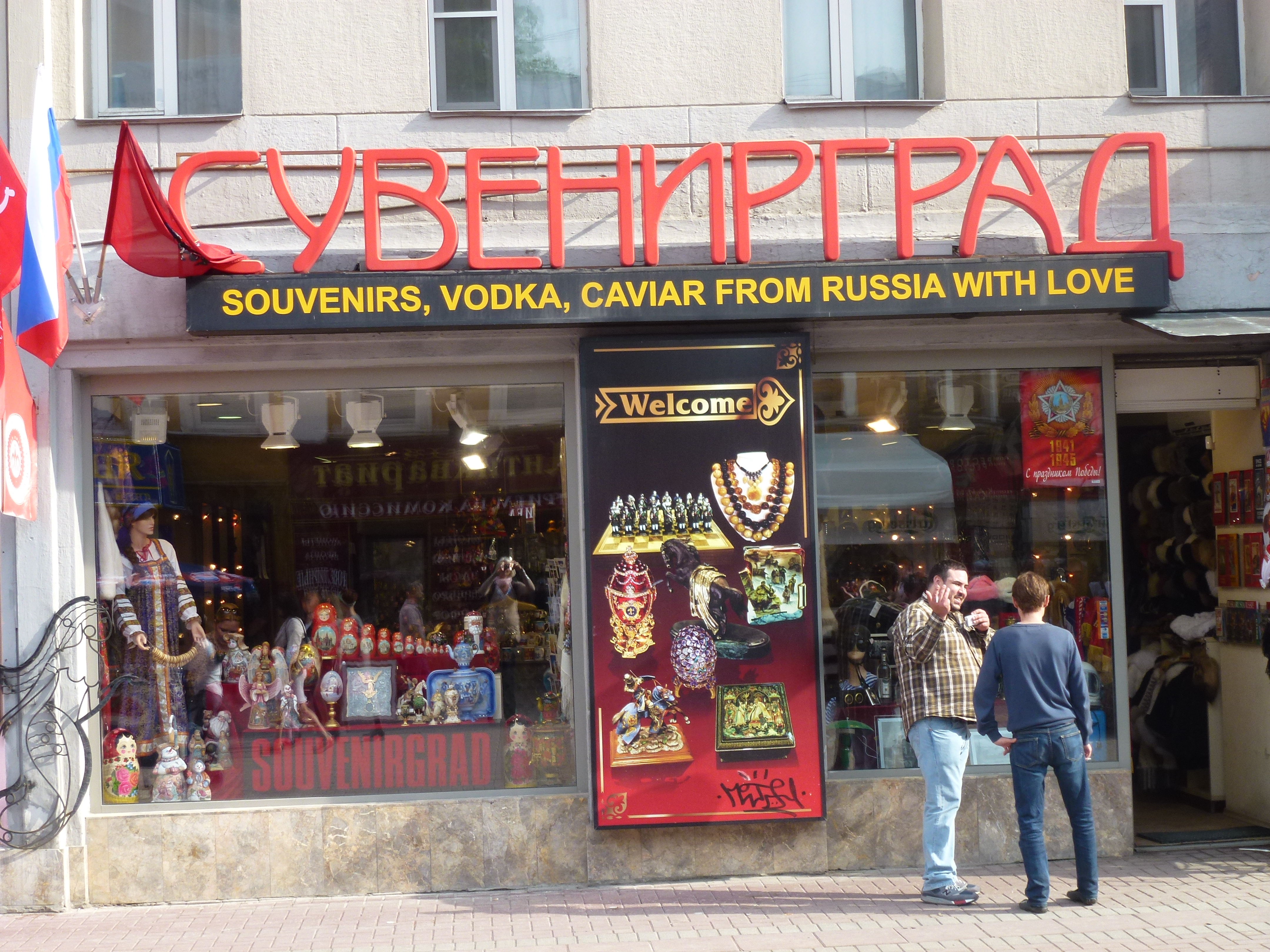 Von da aus schlenderten wir durch den alten „ARBAT“, der Souvenier- Einkaufsstraße. Auch heute wieder überfüllt von Anbietern – für meinen Geschmack – schrecklicher Bilder. Es scheint einen riesigen Markt zu geben für alberne Andenken. Als der Erste zu mir sagte. „Welcome! Come in!“ , erinnerte ich mich an die Wochen der letzten Kreuzfahrtreise von Bangkok bis Mallorca.