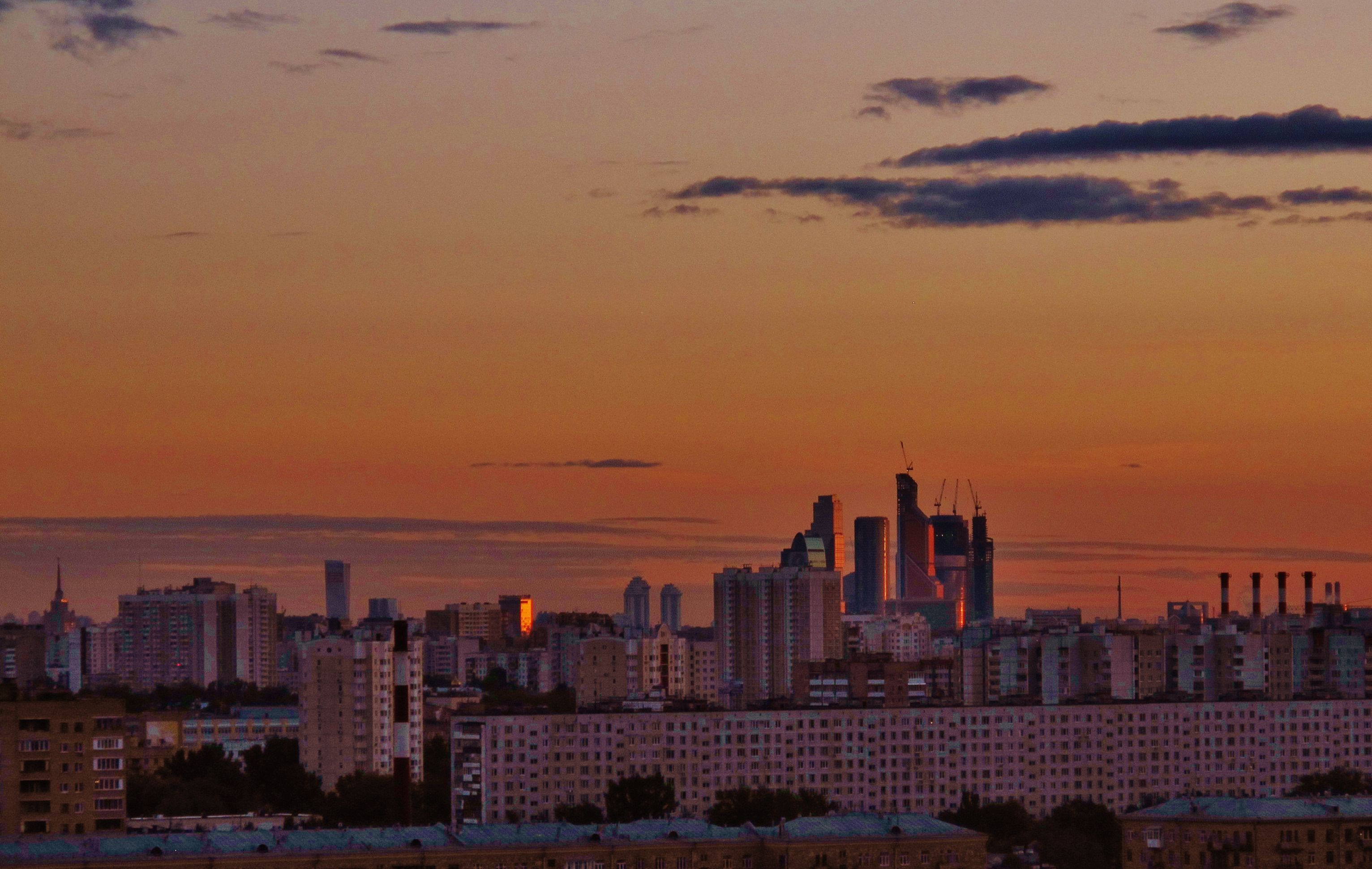 Moskau um halb sieben. Gefühlt noch warm, solange die Sonne ihre letzten Strahlen verstärkt durch Reflektionen.Lichtspiele, die dem Versuch gleich kommen, das Grau der letzten Tage wieder gutmachen zu wollen. Ein Gedicht.